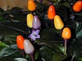 This beautiful ornamental Chile variegates with green and purple foliage and purple blossoms The fruit ripens in a profuse rainbow of color: lavender, purple, bright yellow, orange, and finally to red, with all stages of color on the plant at once The fruits are 1", cone shaped, grow upright on 2-3 ft. plants. Nice and hot, quite edible, but are mainly grown for their stunning beauty Read more